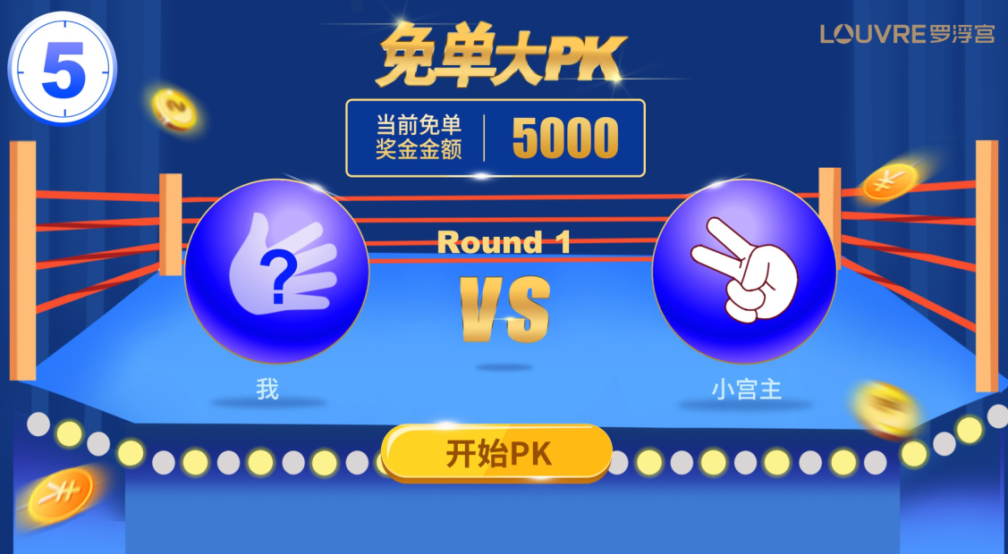 罗浮宫现场活动猜拳游戏:“空格”为开始,数字键“4”为剪刀,数字键“5”为石头,数字键“6”为布